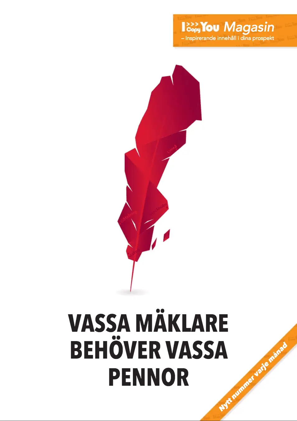 MEN VI ÄR BRA på olika saker. Bara för att du som mäklare försöker trycka pennan genom pappret blir inte texten djupare för det. Genom att låta oss på ICopyYou hjälpa till kan ett oinspirerat utkast till prospekt förvandlas till ett välläst Magasin. Och bäst av allt: du kan vässa pennan till den viktigaste skrivövningen